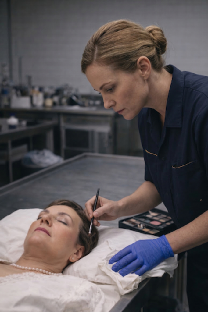 Professional cosmetic application and dressing, coordinated seamlessly with funeral homes to ensure presentation standards are met.